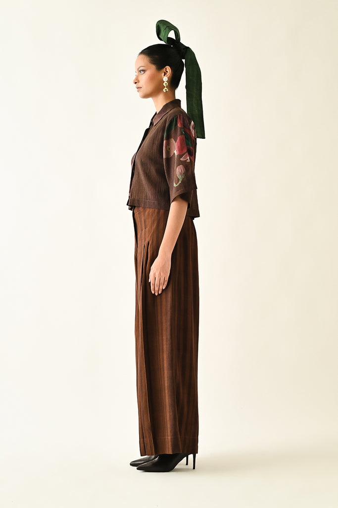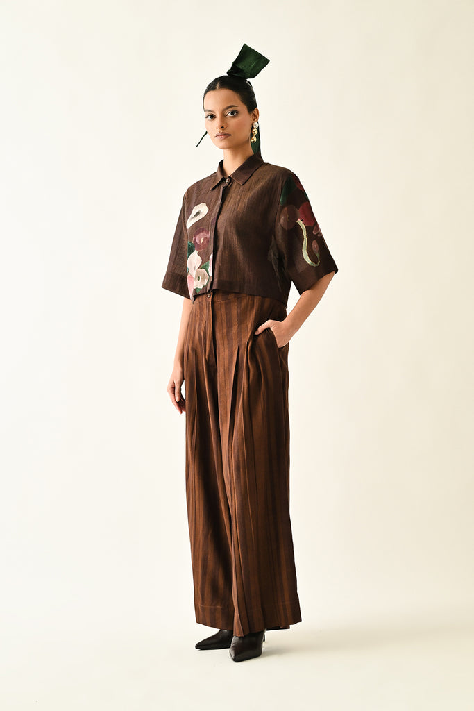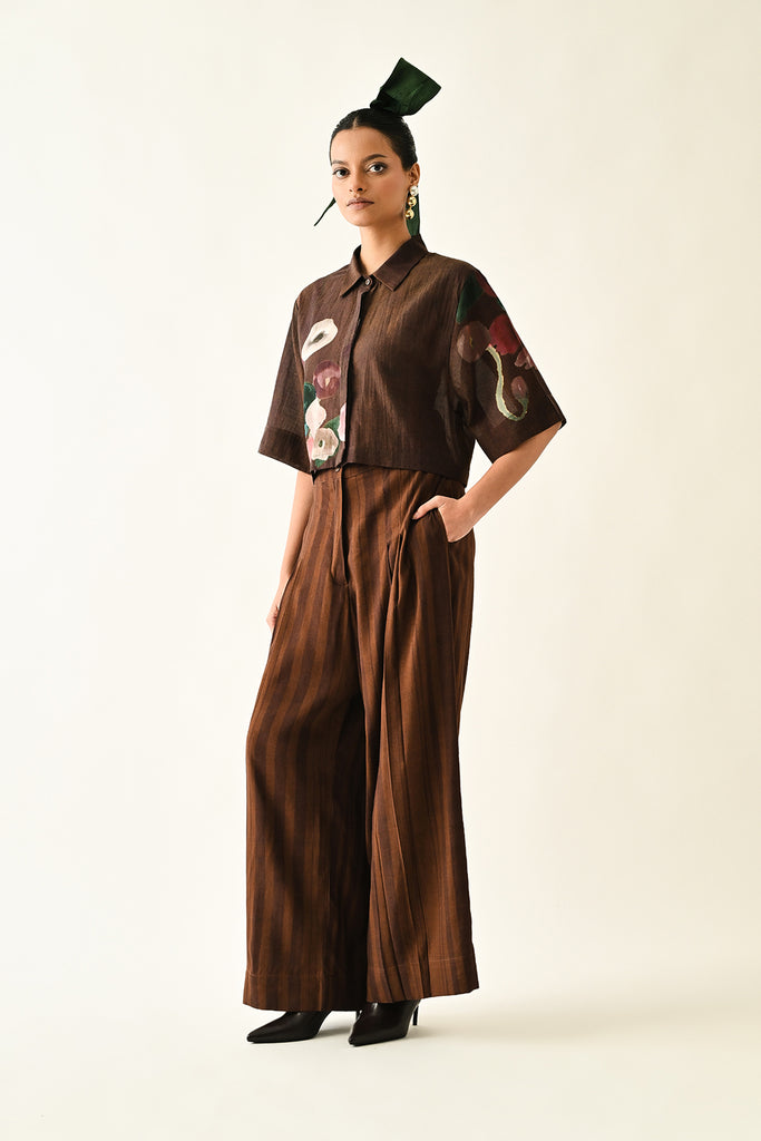 Anti-Fit cropped shirt, hand-painted abstract expressionist digitally transferred print, with back yoke and box pleat. Print placements will vary—single Piece.