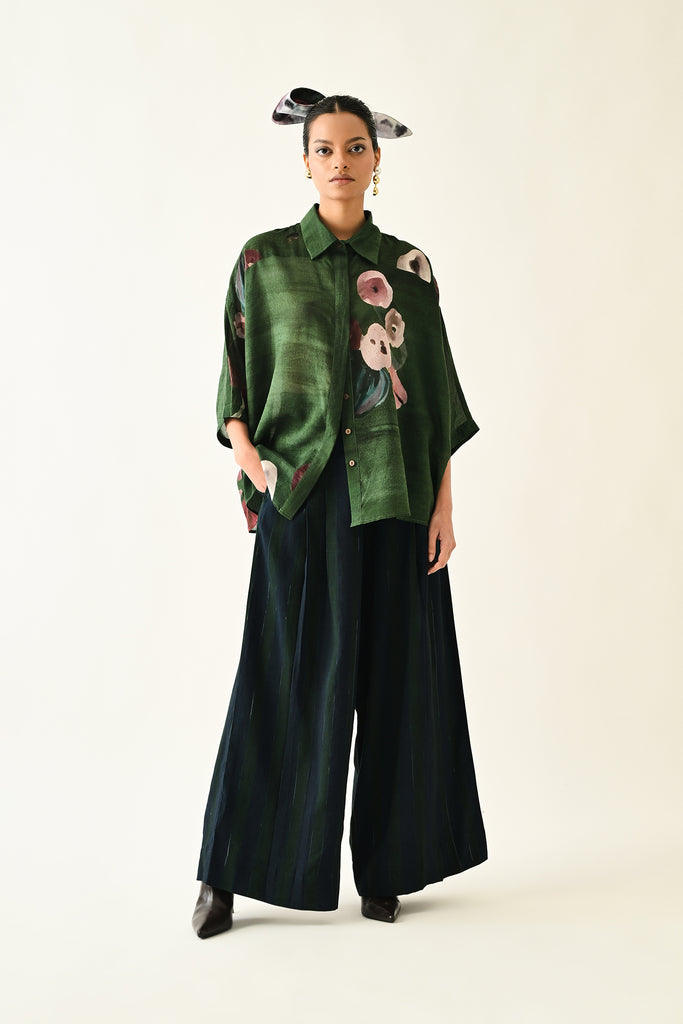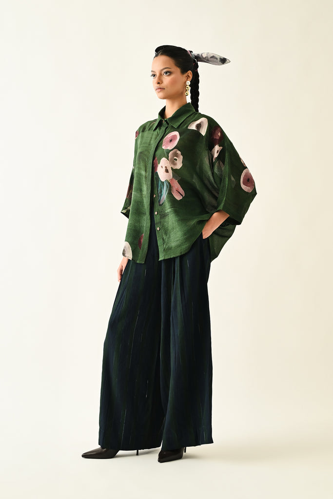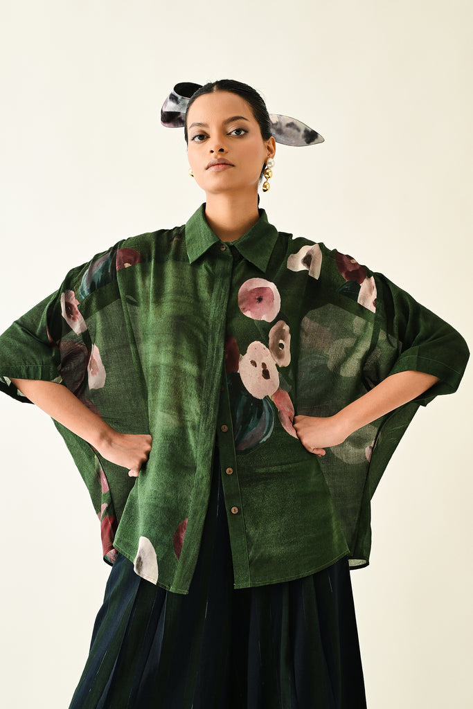 - Anti fit Shirt featuring a hand-painted abstract expressionist print, digitally transferred. Designed with a shirt collar, front placket. . Print placements will vary—single Piece. Model is wearing size XS/S.