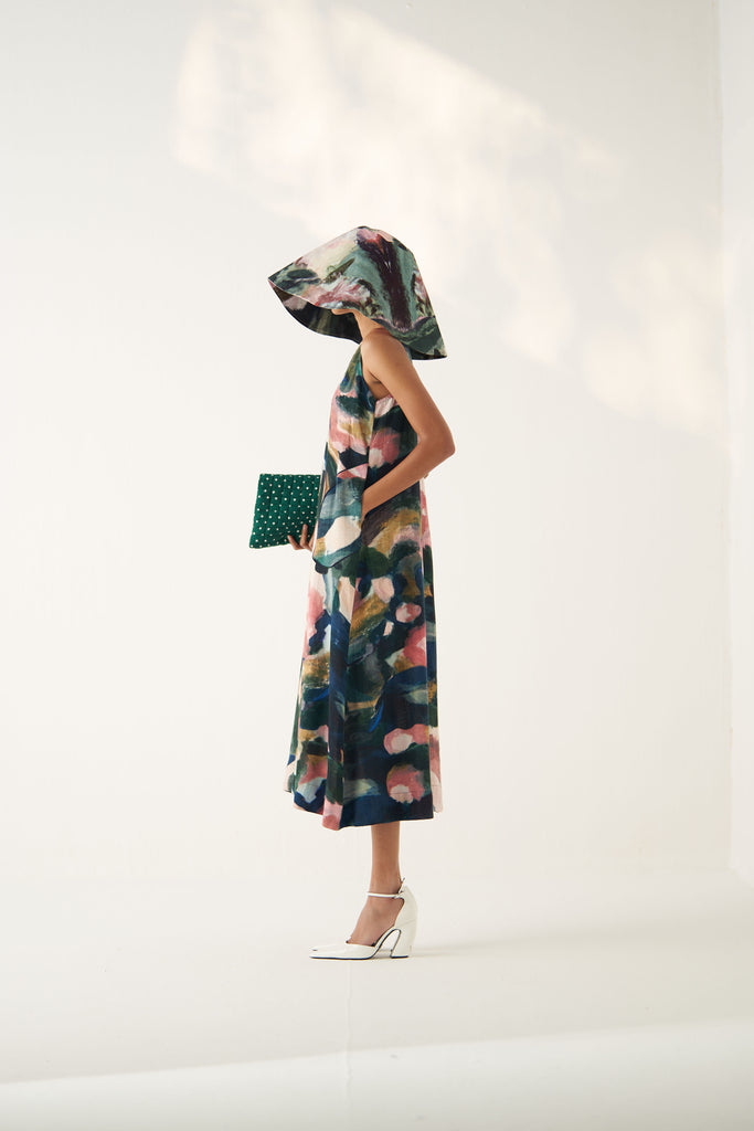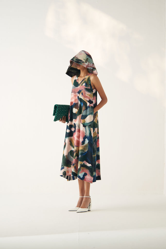 GOT Certified Azo-free dyes, Anti-Fit,Hand-painted abstract expressionist digitally transferred print, V-neck, Top stitch details, Center back insert, Hand - embossed vintage Indian coin detail.