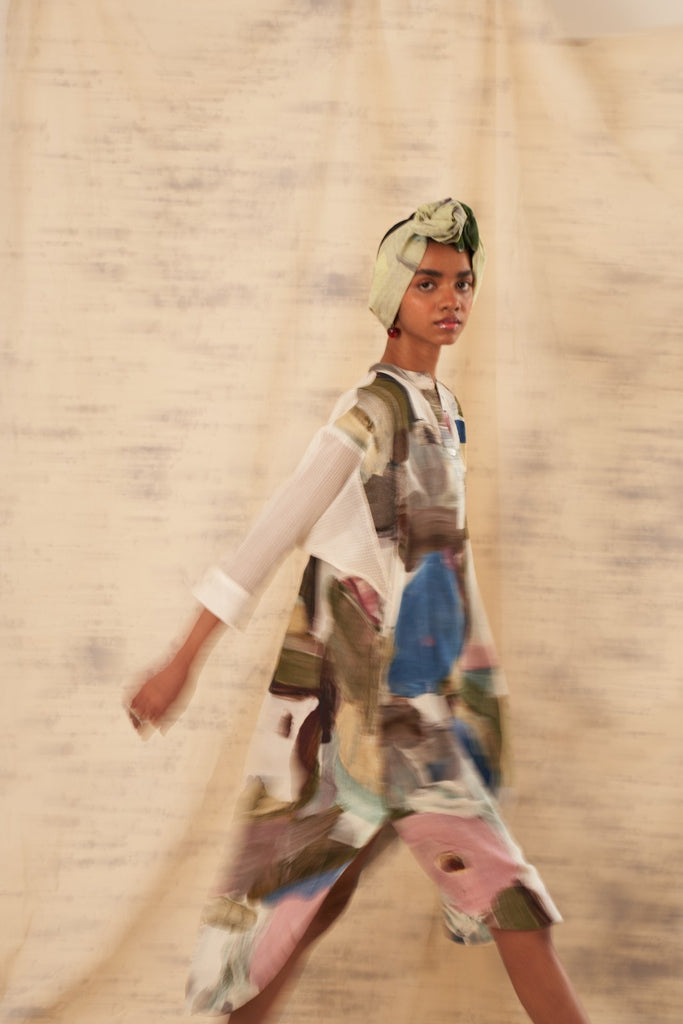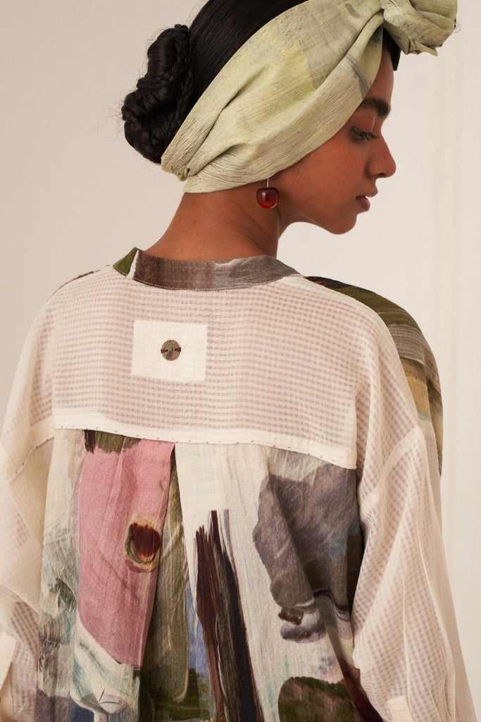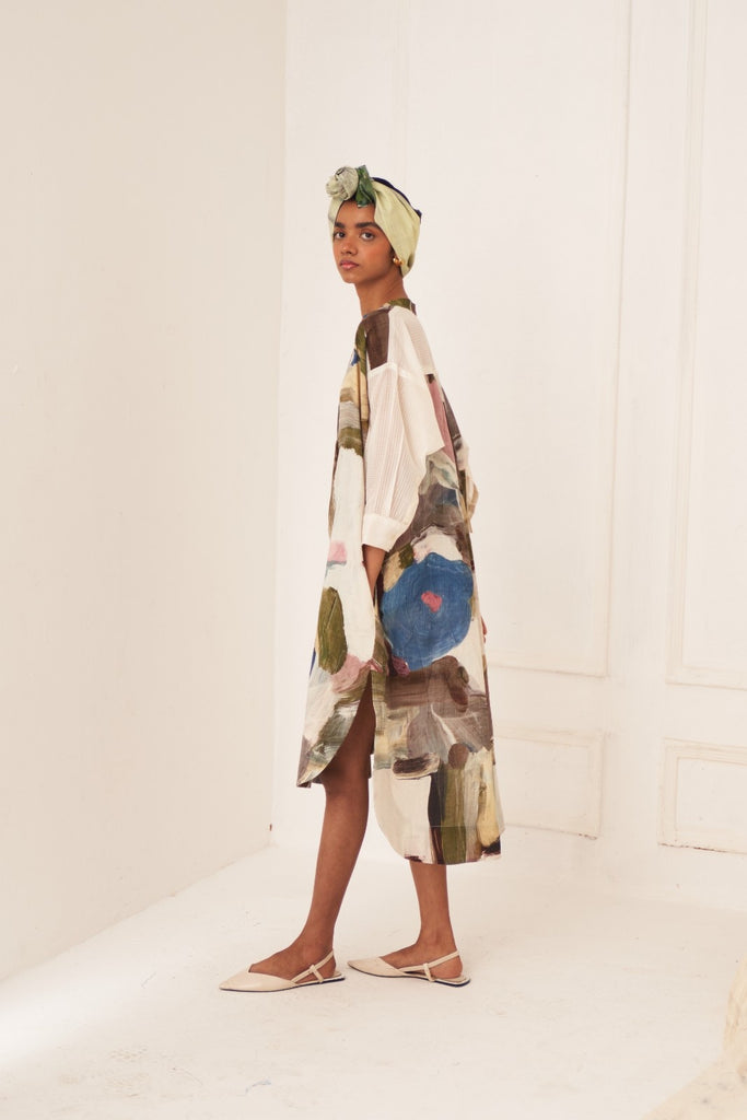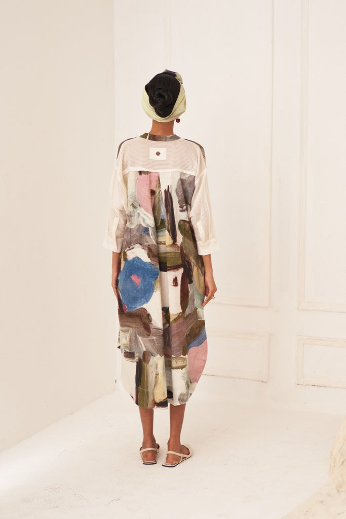 • Artistic Detailing: Features a hand-painted abstract expressionist print digitally transferred; each piece is unique in placement.