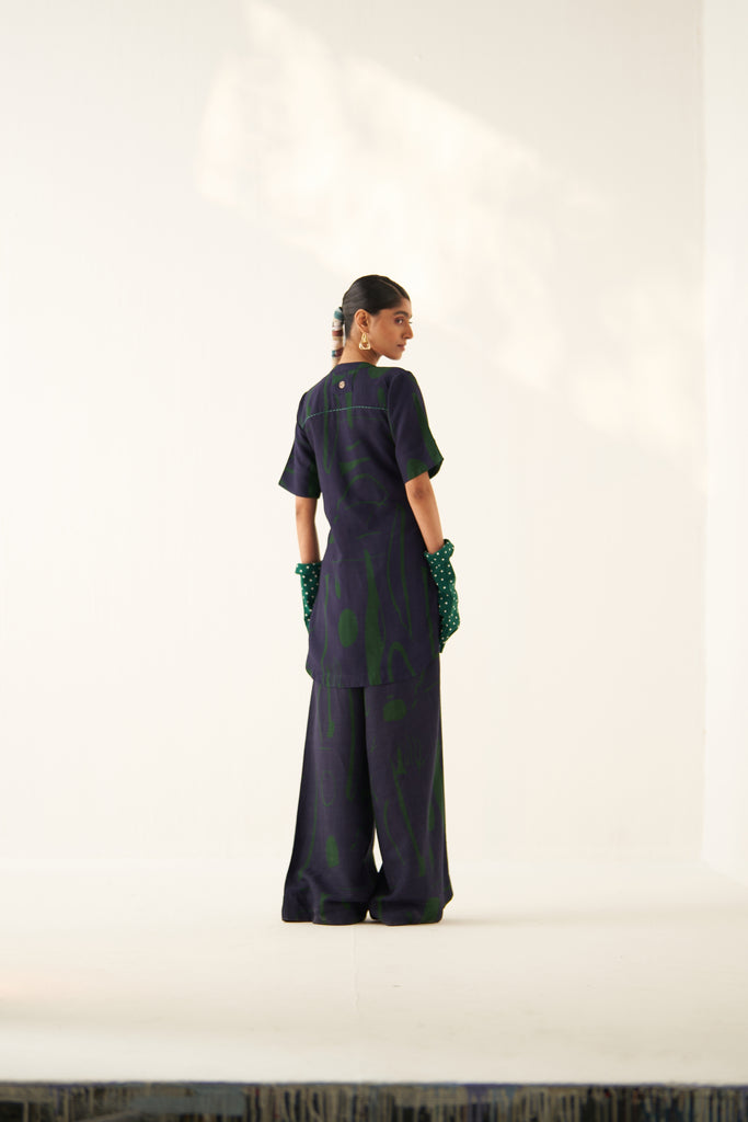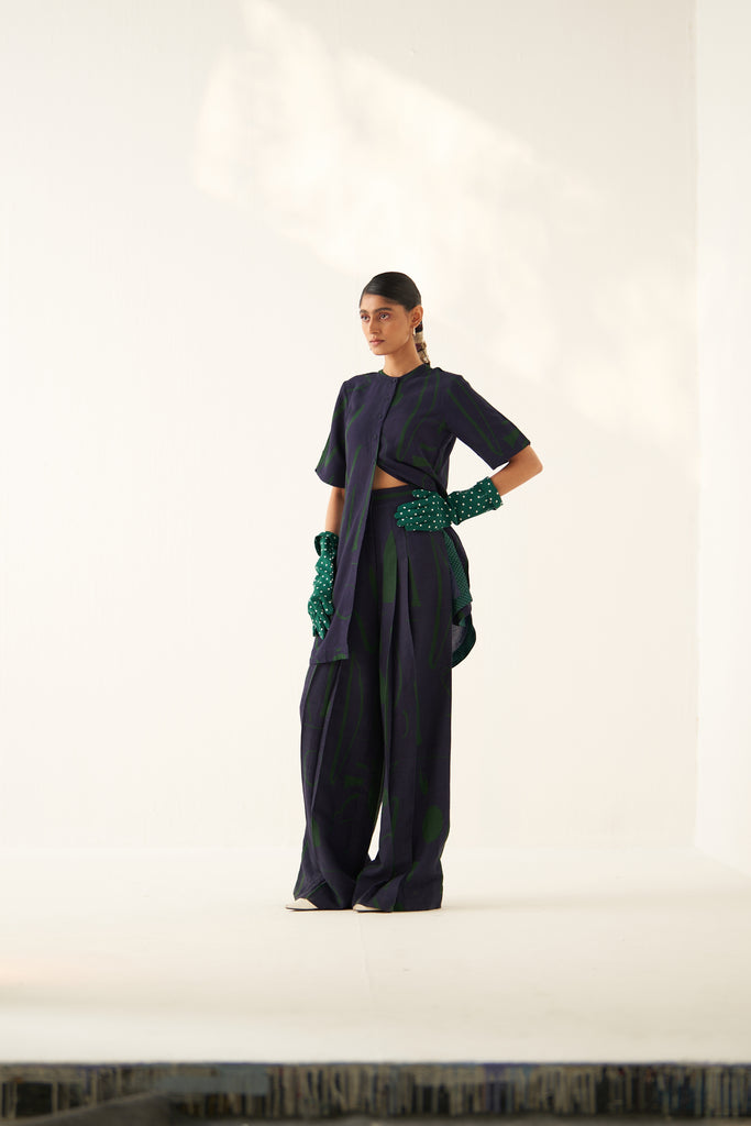 LOWER: • GOT Certified Azo-free dyes, Anti-Fit,Hand-painted abstract expressionist digitally transferred print, Side seam pockets, Front pleat, and Front opening.
