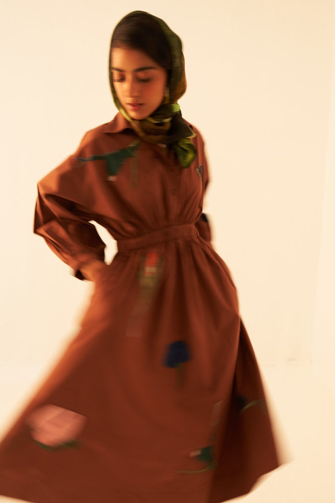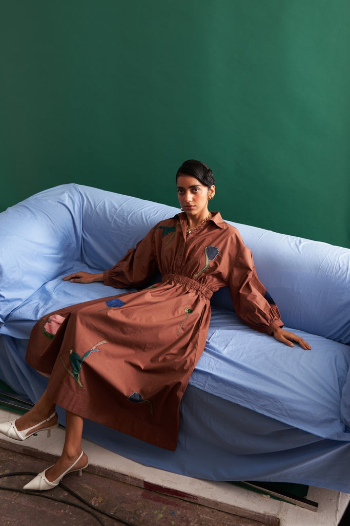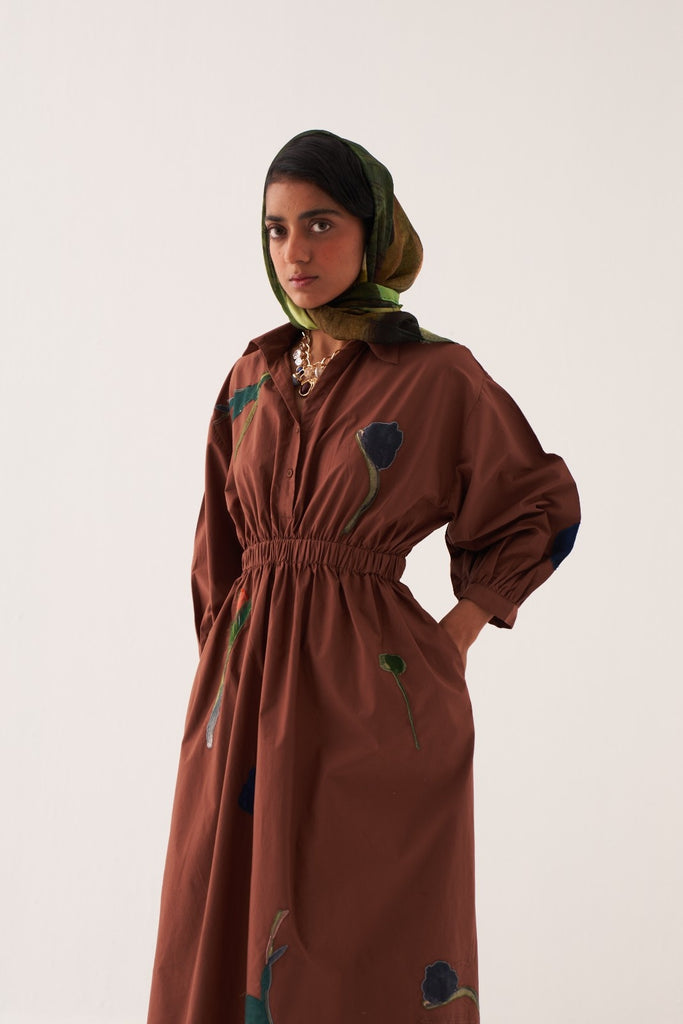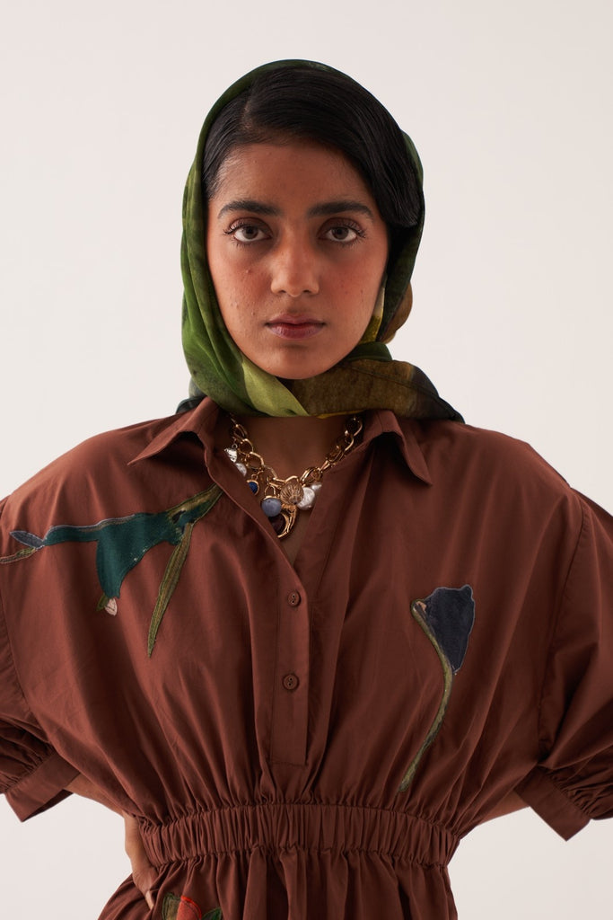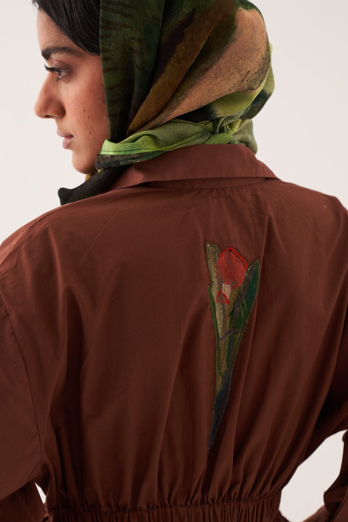 • Key Features: Boasts a full elasticated waist, gathered sleeves with cuffs, side seam pockets, and single-thread embroidery on floral appliques on the front, back, and sleeves; finished with OFR’s signature lune embroidery at the back.