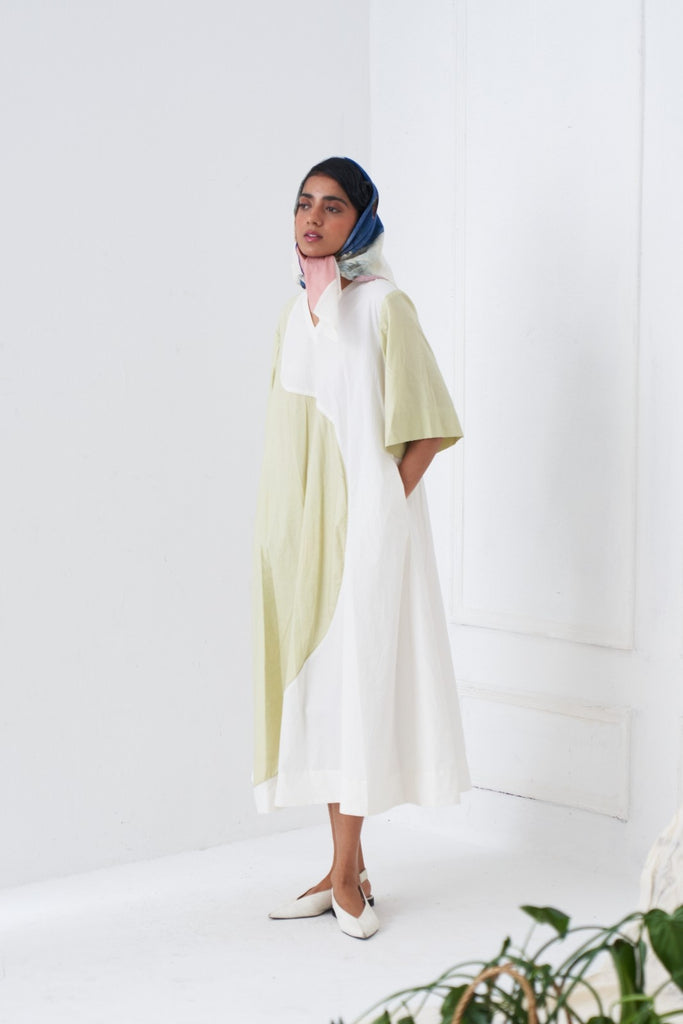 • Elegant Silhouette: A-Line dress featuring Yin patchwork with a flattering V-neck and a stylish insert.