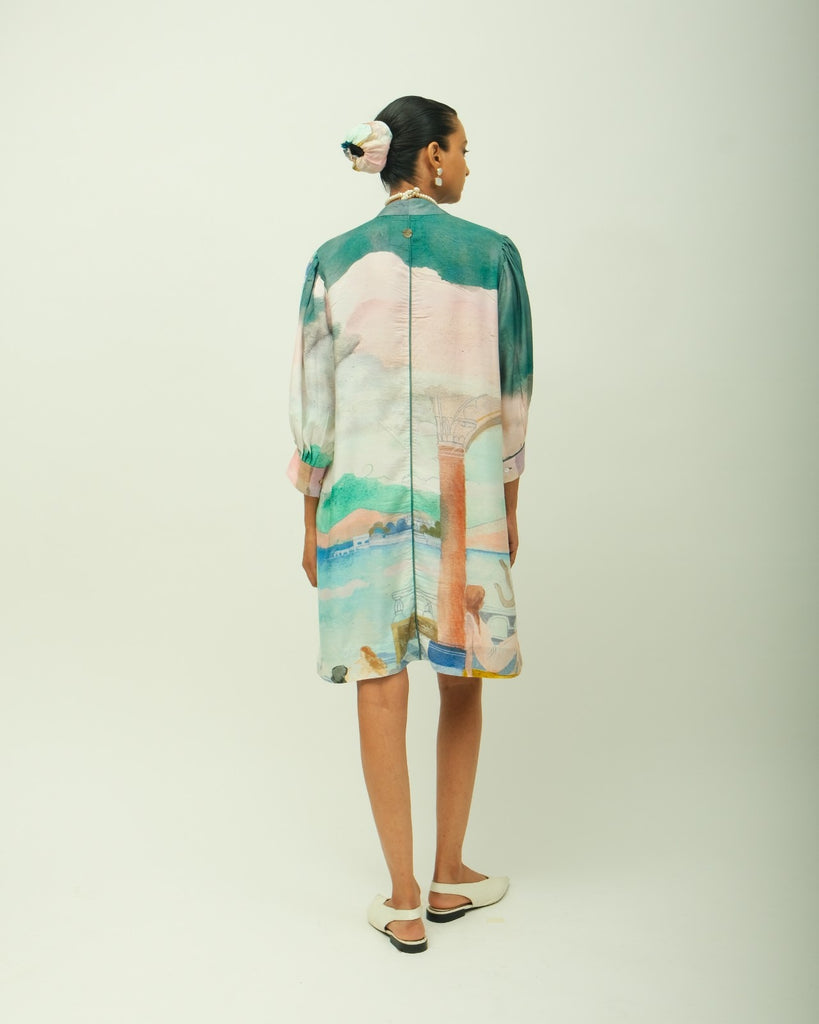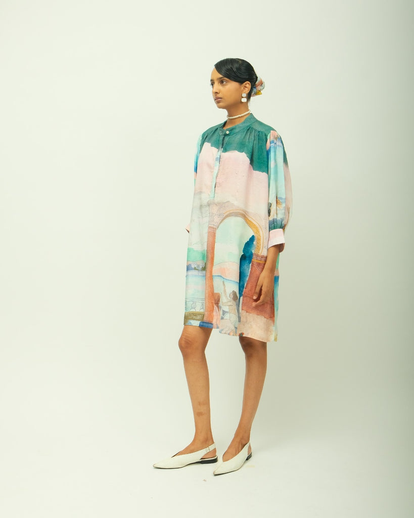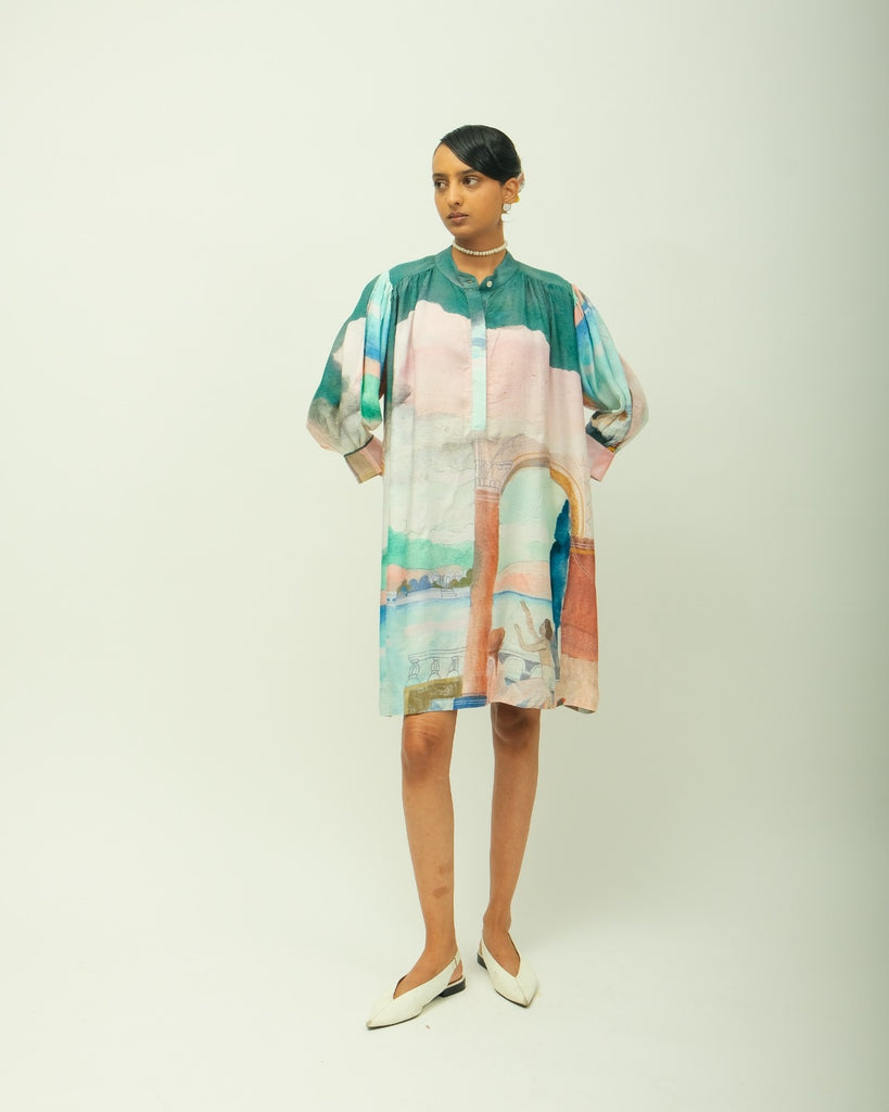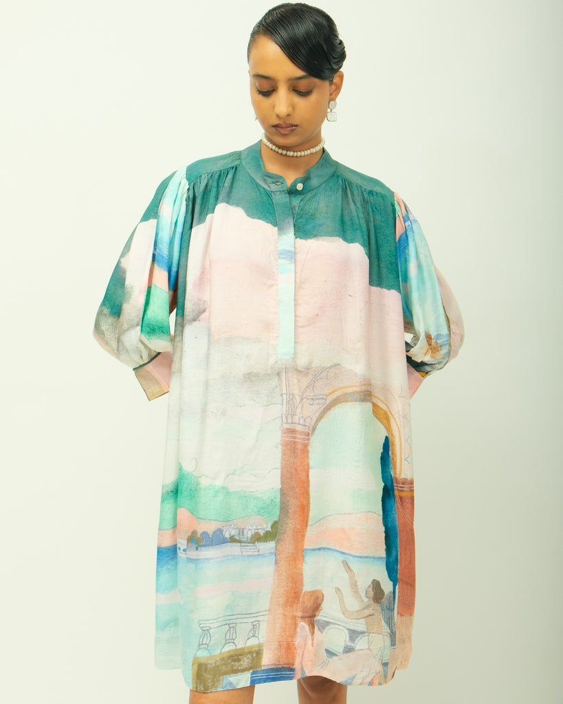 Anti-fit, band collar, full-length sleeves, half placket, gathers on shoulders.