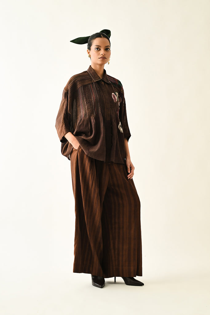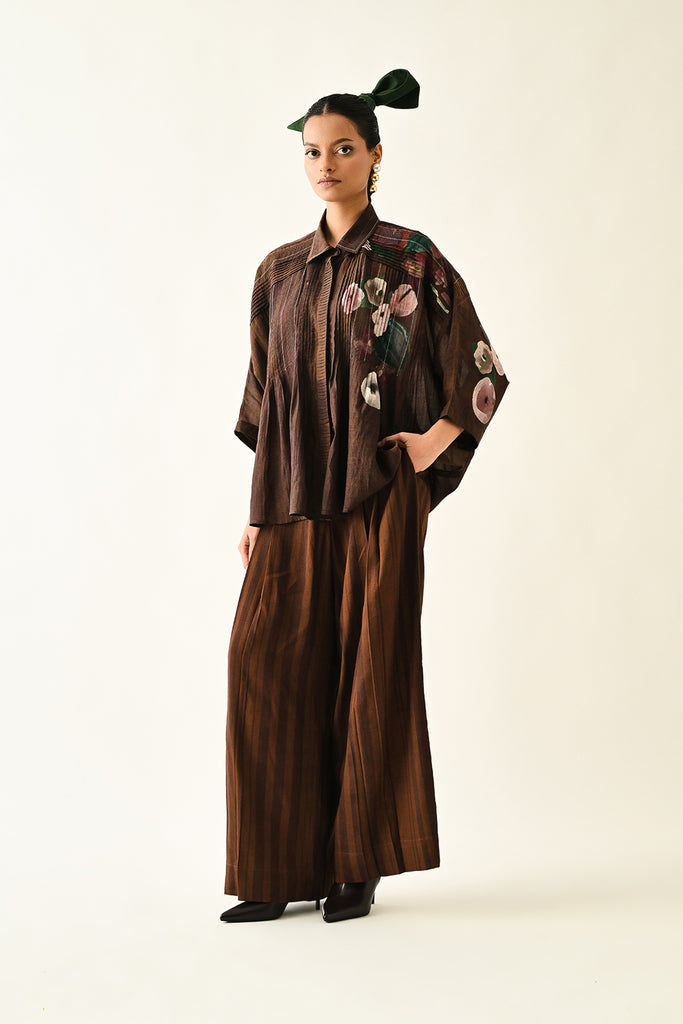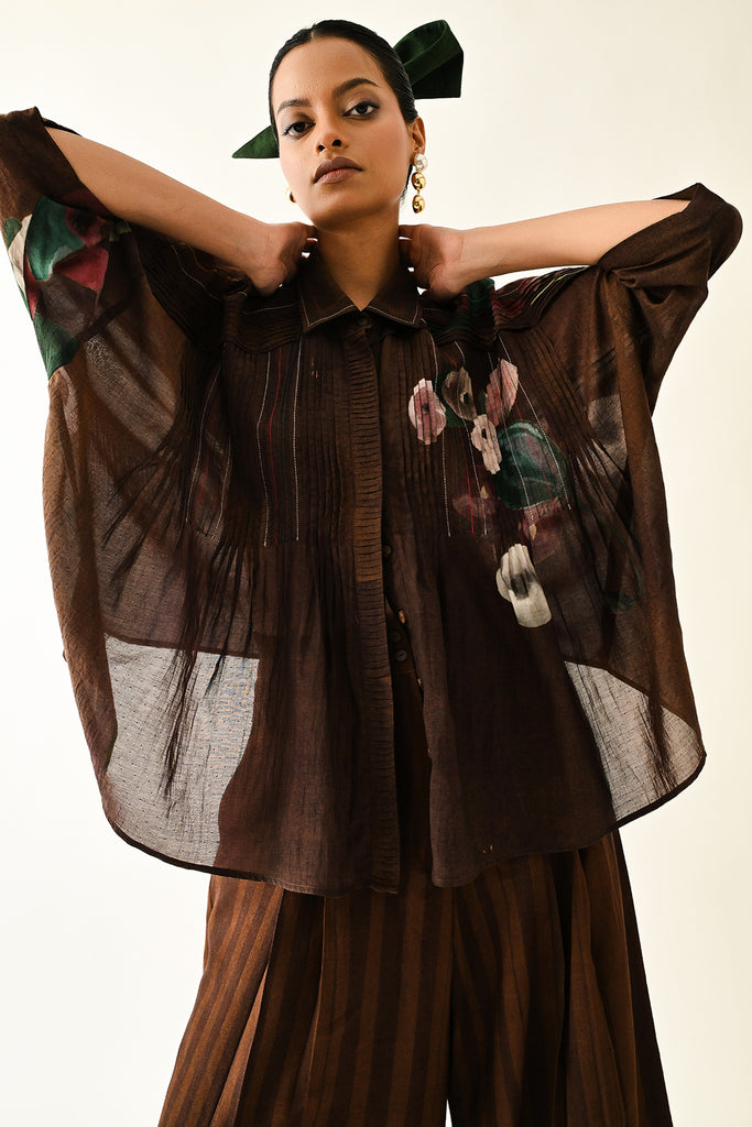 - Anti fit, short sleeved top, relaxed fit, vertical pin tucks on front, hand-painted abstract expressionist digitally transferred print, crafted from lightweight textiles. this piece offers both comfort and understated elegance. Print may vary- Single piece.