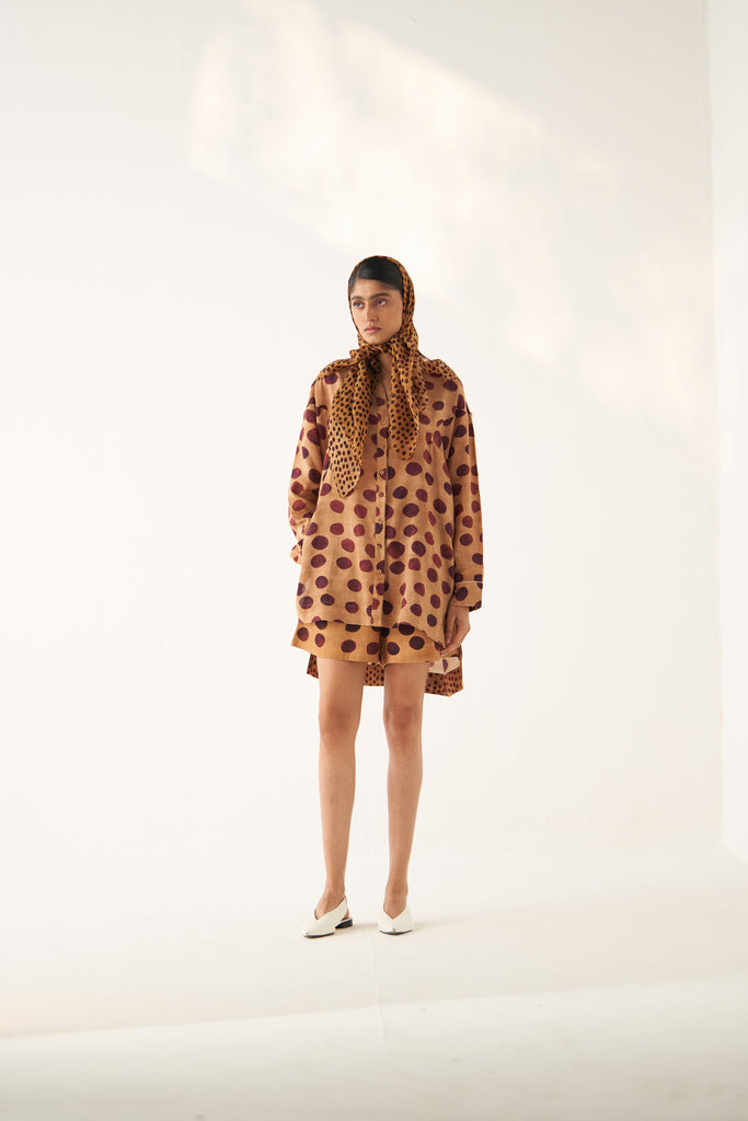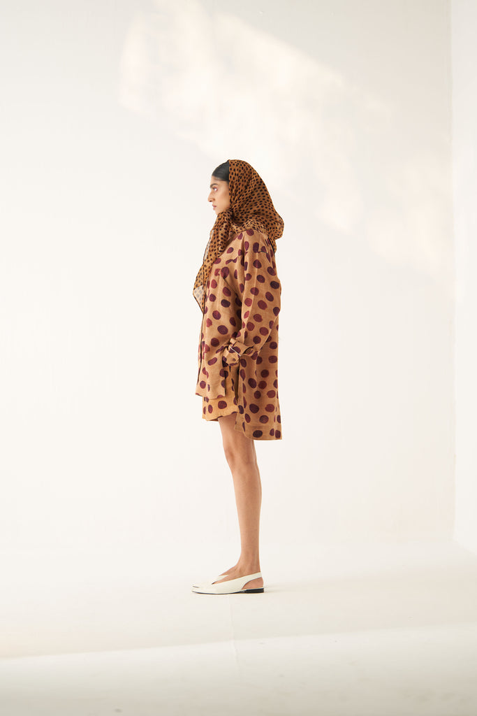 GOT Certified Azo-free dyes, Anti-Fit,Hand-painted abstract expressionist digitally transferred print, Raglan sleeves, Cuff insert, Center back inverted box pleat, High- Low length, Hand-embossed vintage Indian coin detail.